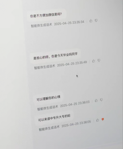在刘梓豪看来,自己的工作类似于“数字园丁”,逐步将原始的AI模型培养成为能够独当一面的金牌业务员:“我们的智能体毕竟是一个初始化的AI模型,最初可能会存在一些理解上面的问题以及话术上面不自然的表象,所以我们需要不断地去做修正,告诉他什么样的话术在这些场景里面是正确的。”