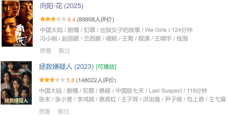 同理,过去一年里,女性题材电影十分突出。