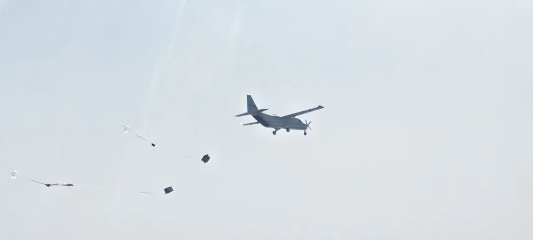 据了解,本次空投测试中,SA750U大型无人运输机装载1500公斤空投件飞抵预定空域后,自主完成多件货物的连续精准投放。测试全程,飞机姿态稳定,货物依次有序出舱,降落伞正常展开,所有货物均准确降落至预定地点。