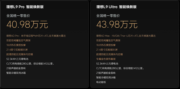 快科技5月8日消息,刚刚,焕新版理想L9上市,共推出两款车型,售价区间为40.98-43.98万元,和老款保持一致。