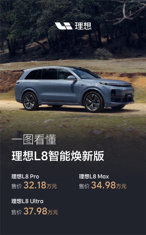 快科技5月8日消息,理想L8智能焕新版今晚正式上市,售价区间为32.18万至37.98万元。