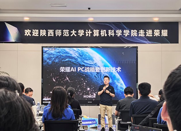 随着人工智能技术应用在各行各业的不断深入,校企联动的产教融合正成为当前AI人才培养的重要手段。5月7日,陕西师范大学计算机科学学院人工智能班(简称陕师大AI班)的师生们走进荣耀西研所,近距离体验荣耀新款AI PC产品MagicBook Pro 16 2025,并现场聆听荣耀AI PC 2.0战略分享,感受AI技术在PC产业的落地应用以及未来发展趋势。