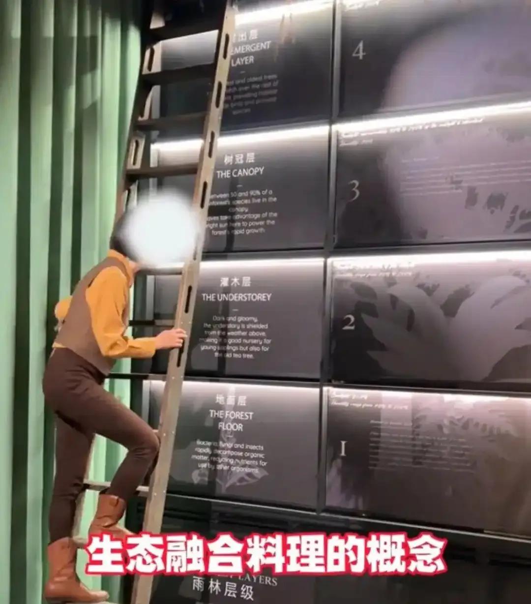 待到第二道大门徐徐打开后,另一位讲解员爬上梯子,为大家讲解生态融合料理的概念。