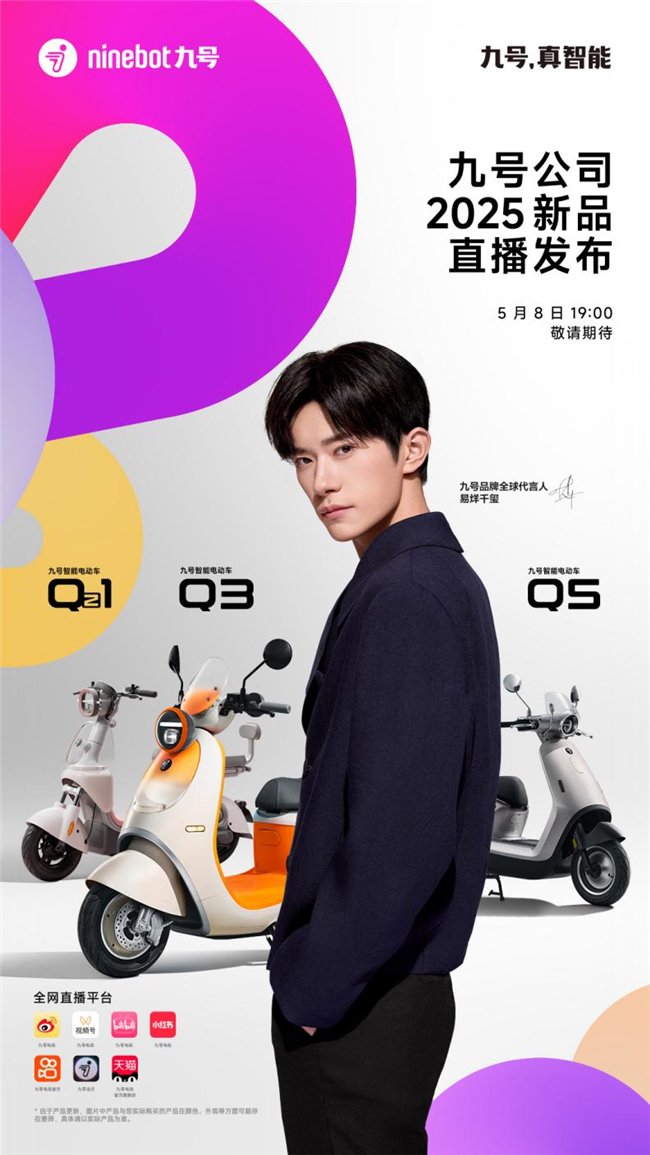 目前,以上各新品已于5月8日20:00起正式开售/预售,用户可前往九号官方天猫/京东/抖音/ 快手/美团等电商平台旗舰店或九号出行APP商城内购买。此外,Q5将于2025年7月正式发售。现在就前往九号官方旗舰店/九号出行APP,选购你心中的Q系爱车,收获你的自由、优雅、热爱与独立,让一万种生活,从这一次骑行开始。