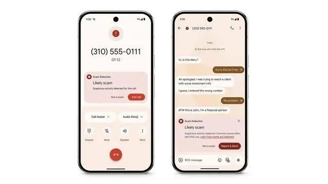 此外,谷歌在 Google Messages 和 Phone by Google 中引入了设备端 AI 诈骗检测功能,专门应对通过电话和短信发起的复杂诈骗,保护用户免受伪装成正常通信的欺骗行为。