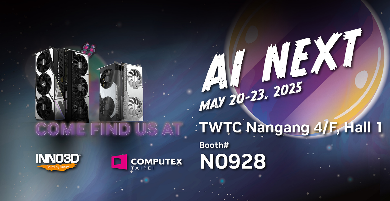 国际一线AIC显卡品牌INNO3D映众将参与这一届展会。于5月20日到23日,在台北世贸南港展览馆4楼1号馆,N0928号展位期待各位玩家及合作伙伴的到来。