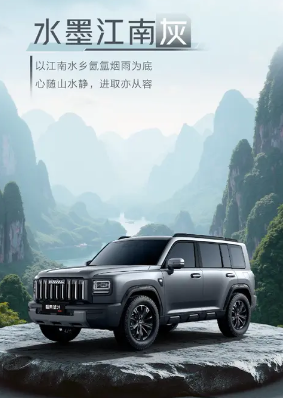 新车提供了5种车漆颜色选择,包括苔岩绿、玄夜黑、水墨江南灰、云涧灰和揽月白,其中苔岩绿是燃油版的专属车色,其他四种颜色也在猛龙PHEV车型上使用。