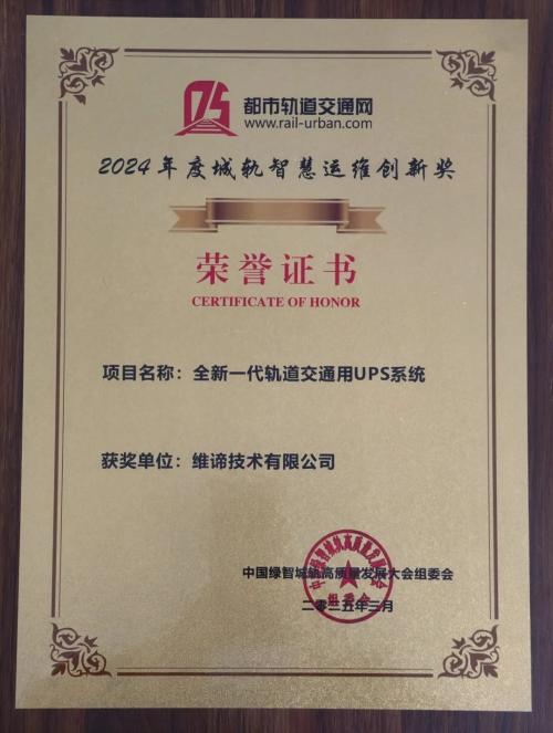 凭借领先的研发设计和技术创新,Industry S系列UPS在本届大会上,荣膺“2024年度城轨智慧运维创新奖”,产品的设计优势得到了行业认可。