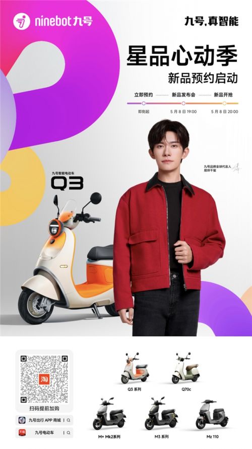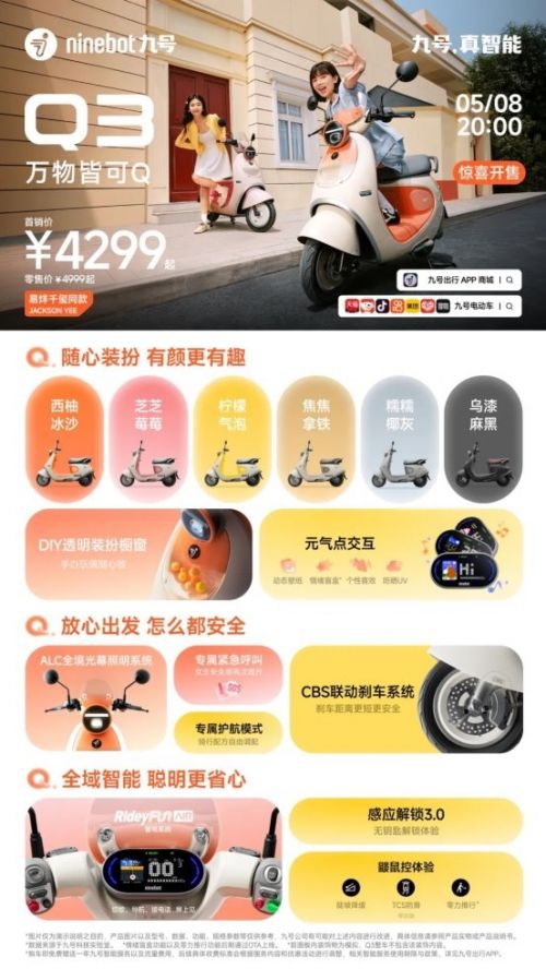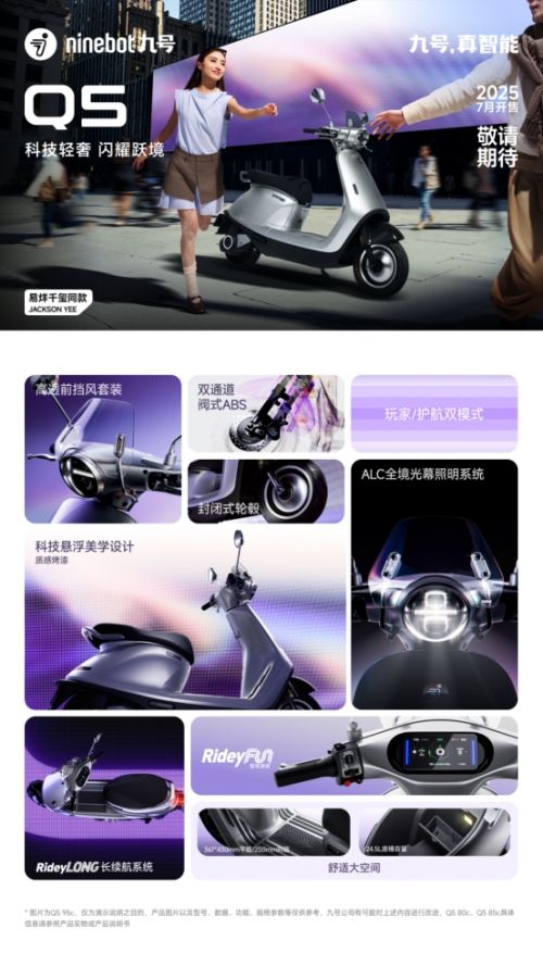 目前,以上各新品已于5月8日20:00起正式开售/预售,用户可前往九号官方天猫/京东/抖音/ 快手/美团等电商平台旗舰店或九号出行APP商城内购买。此外,Q5将于2025年7月正式发售。现在就前往九号官方旗舰店/九号出行APP,选购你心中的Q系爱车,收获你的自由、优雅、热爱与独立,让一万种生活,从这一次骑行开始。