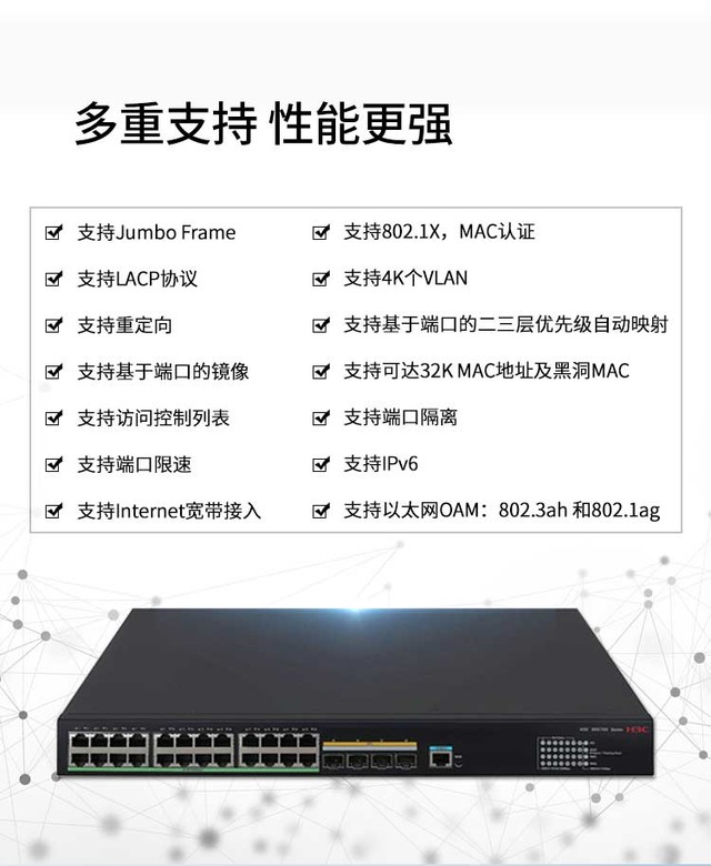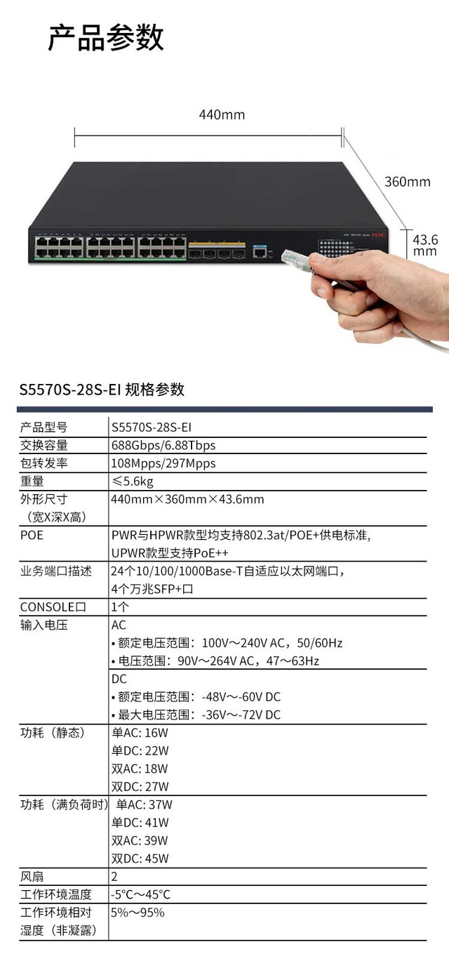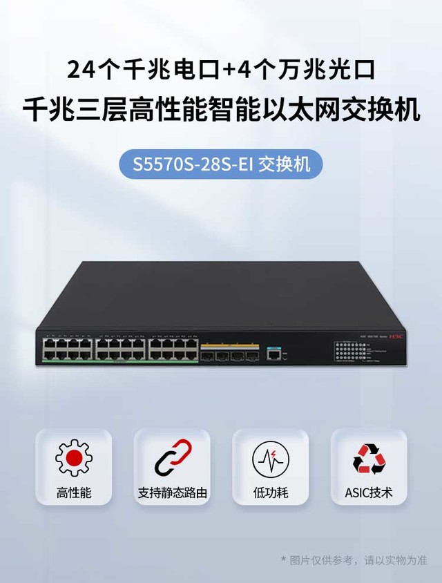 (中关村在线 四川行情)H3C S5570S-28S-EI是新华三公司采用业界专业的ASIC技术开发的新一代高性能、高端口密度、高安全性且易于安装的智能型可网管的千兆以太网交换机,支持IPv4/IPV6双栈管理和转发,支持静态路由协议和RIP、OSPF、BGP、ISIS等路由协议,支持丰富的管理和安全特性。H3C S5570S-28S-EI主要定位于企业与园区的接入层和汇聚层,满足高密度千兆接入,固定万兆上行口,支持PoE+,与H3C公司其它产品一起构建高性能端到端IP网络解决方案。