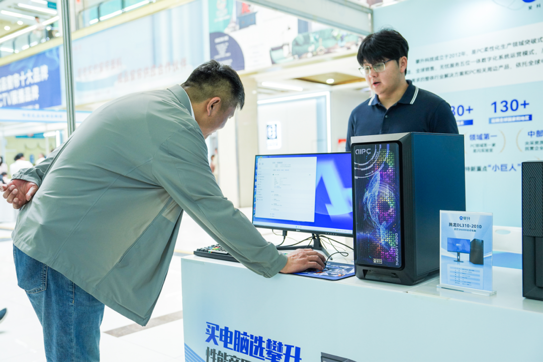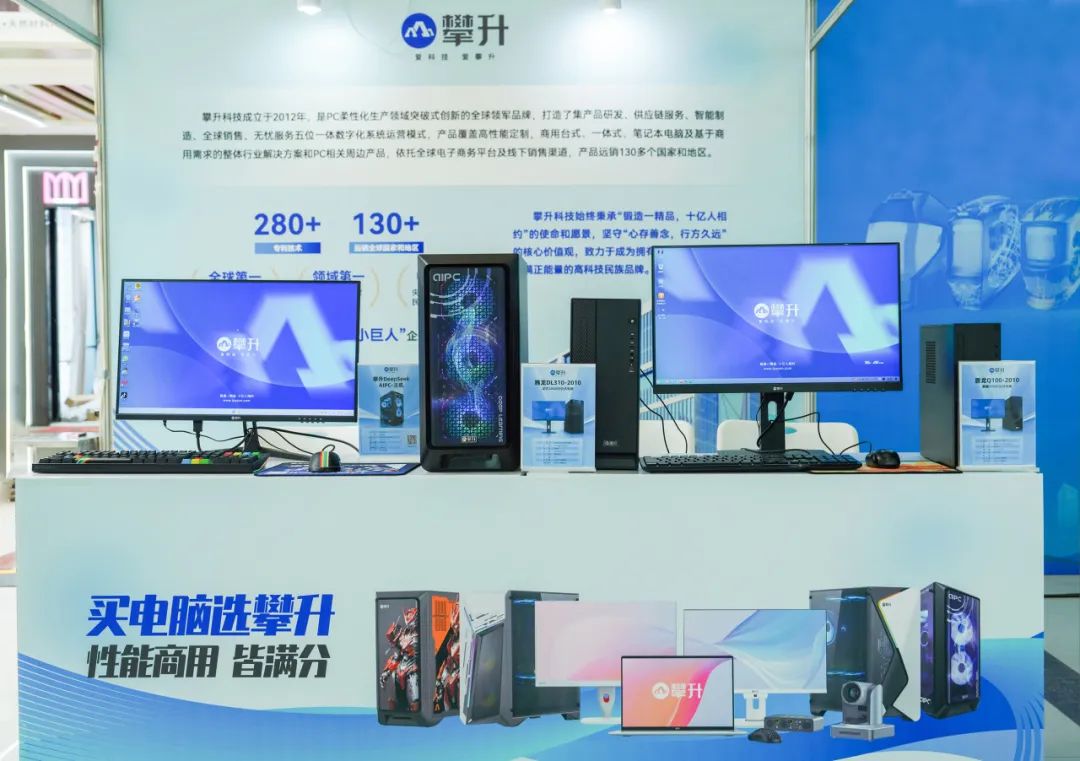 同时,攀升科技还展示了信创领域的重磅产品——攀升磐龙Q100 麒麟9000C台式电脑和攀升腾龙DL310 龙芯3A6000台式电脑,这些信创电脑产品以稳定可靠、自主可控的特点,为政企用户提供了国产化的优质办公解决方案。