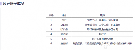 与此同时,上海农商行还发布了副行长金剑华辞任的公告。金剑华因到龄退休原因,辞去副行长职务。目前,据上海农商行官网披露,该行的领导班子成员中仅有六人,除了上述介绍的董事长徐力外,还有党委副书记应长明、副行长张宏彪、副行长顾贤斌、副行长沈栋、党委委员赵立新。