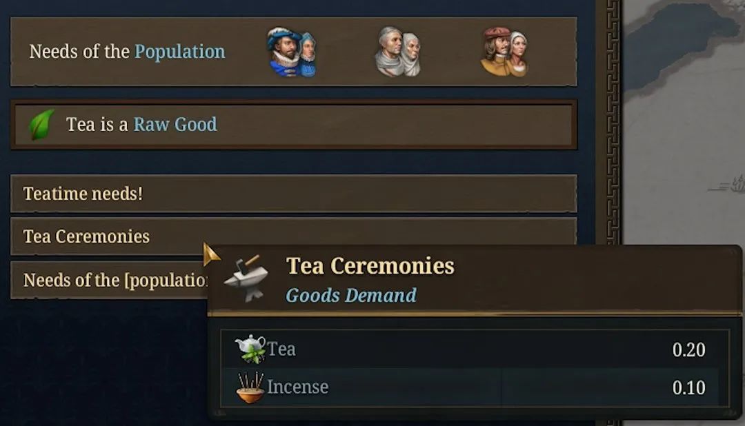 例如有阶层的需求是喝上一口午后红茶,那就得确保有人种茶,也得有人产糖,不会凭空从市场里长出来——玩家得围绕着一个动态且完整的供应链不断进行调整。