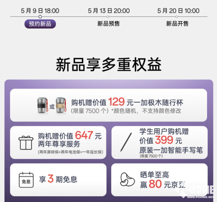 一加平板2 Pro上线开启预约,根据页面显示,这款平板将在5月13号开启预售,在5月20号正式开售,开售即可享国家补贴15%。