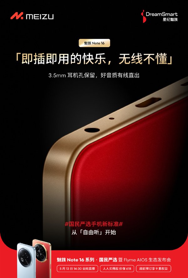今日,星纪魅族官微预热,称魅族Note 16 Pro搭载全功能NFC,一碰通行,红外遥控让手机化身遥控器,魅族Note 16则保留了“极为先进”的3.5mm耳机孔。