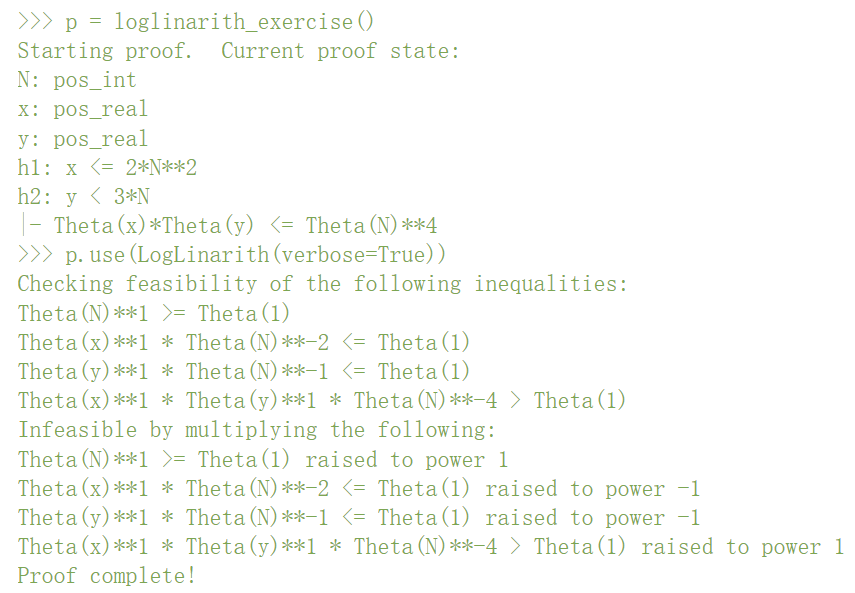 (实现为 lesssim (X,Y))。接下来可以应用对数形式的线性算术来自动验证一些渐近估计。这里有个简单的例子:给定一个正整数 N 和正实数 x,y,使得