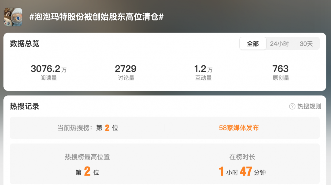 泡泡玛特股份被创始股东高位清仓
