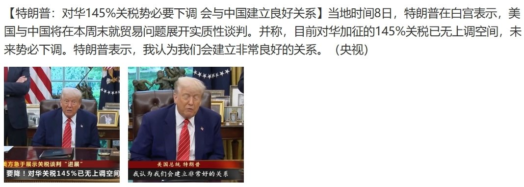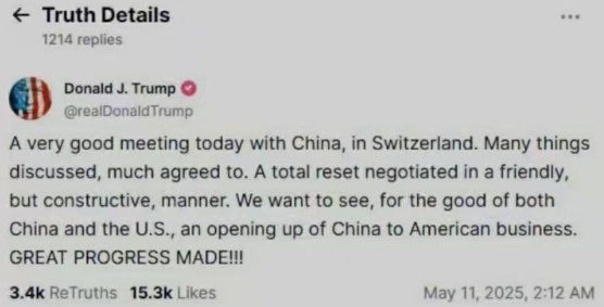 这不,刚刚,11号,老特最新的真实号上发文,今天有一个非常good的会谈,和中国取得重大进展。