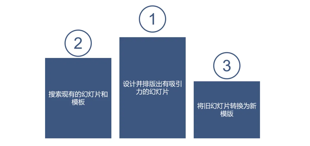 基于已有PPT作优化,很容易让人觉得这能节省大量时间——“我们就修改一下上个月的PPT吧”。结果,重复使用旧幻灯片带来的问题可能比它解决的问题还要多。从旧PPT中查找幻灯片,然后要确保这些幻灯片的内容是最新的,接着还要更新使其符合新模版,极其耗费时间[7]。