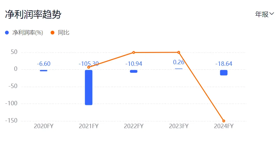 与在海外人气大涨形成对比的是,2024年公司整体业绩由盈转亏。财报显示,过去一年公司营收49.21亿元,同比下降4.7%;经调整净利润由2023年的盈利2090万元转为亏损9.19亿元,亏损幅度超市场预期。