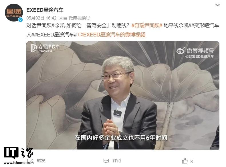 5 月 12 日消息,奇瑞董事长尹同跃本月在一档访谈节目中表示,技术是魔鬼,安全是底线,我们是不是把这些技术魔鬼摸透了,它会不会发疯?