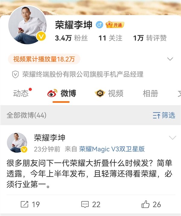 据此前官方爆料,荣耀Magic V5会在今年上半年发布,预计6月登场。