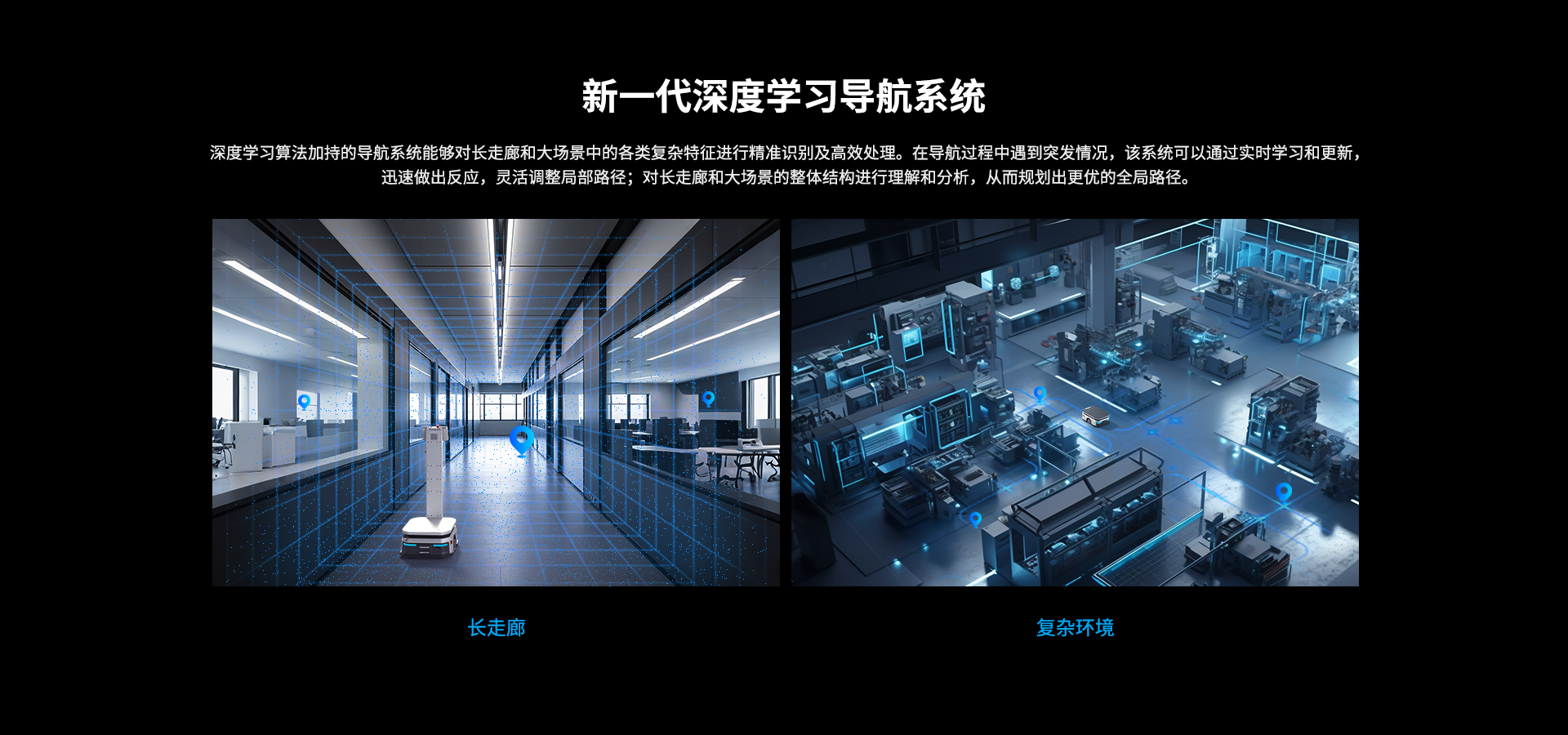 复杂环境轻松应对:搭载深度学习算法,精准识别长走廊、大场景中的动态障碍物,实时优化全局与局部路径,确保高效避障与稳定导航。