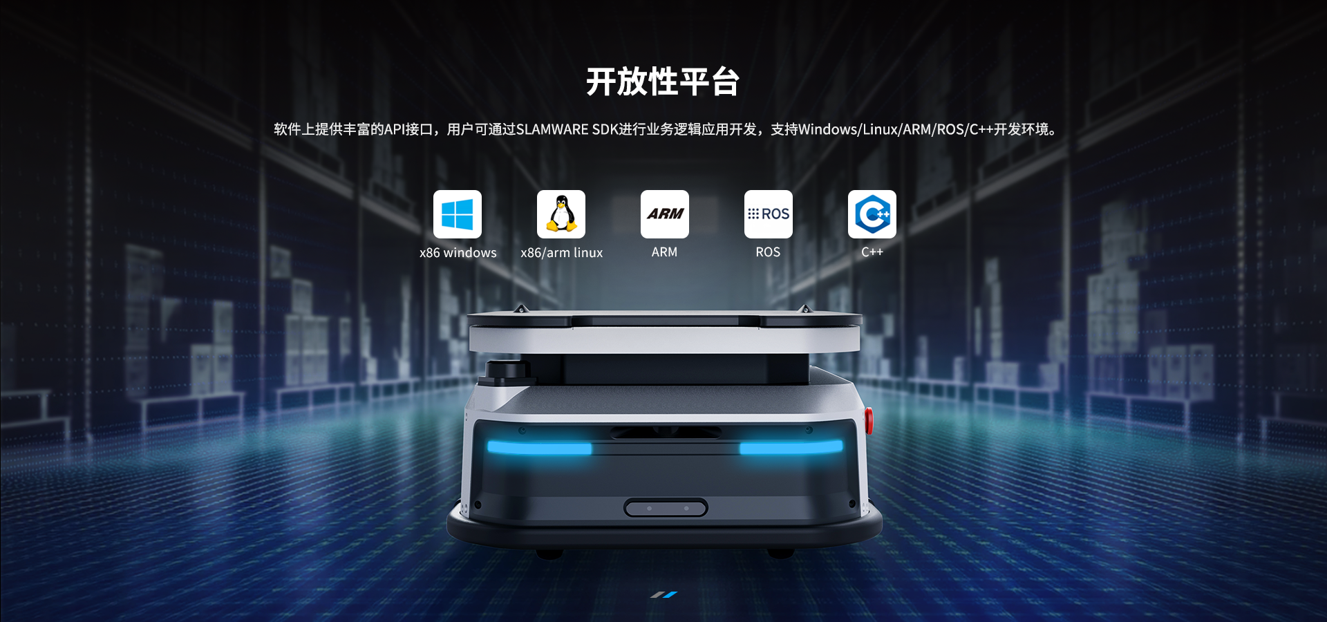 软件高度适配:集成SLAMWARE SDK,兼容Windows/Linux/ROS等开发环境,丰富的API接口助力快速开发业务逻辑。