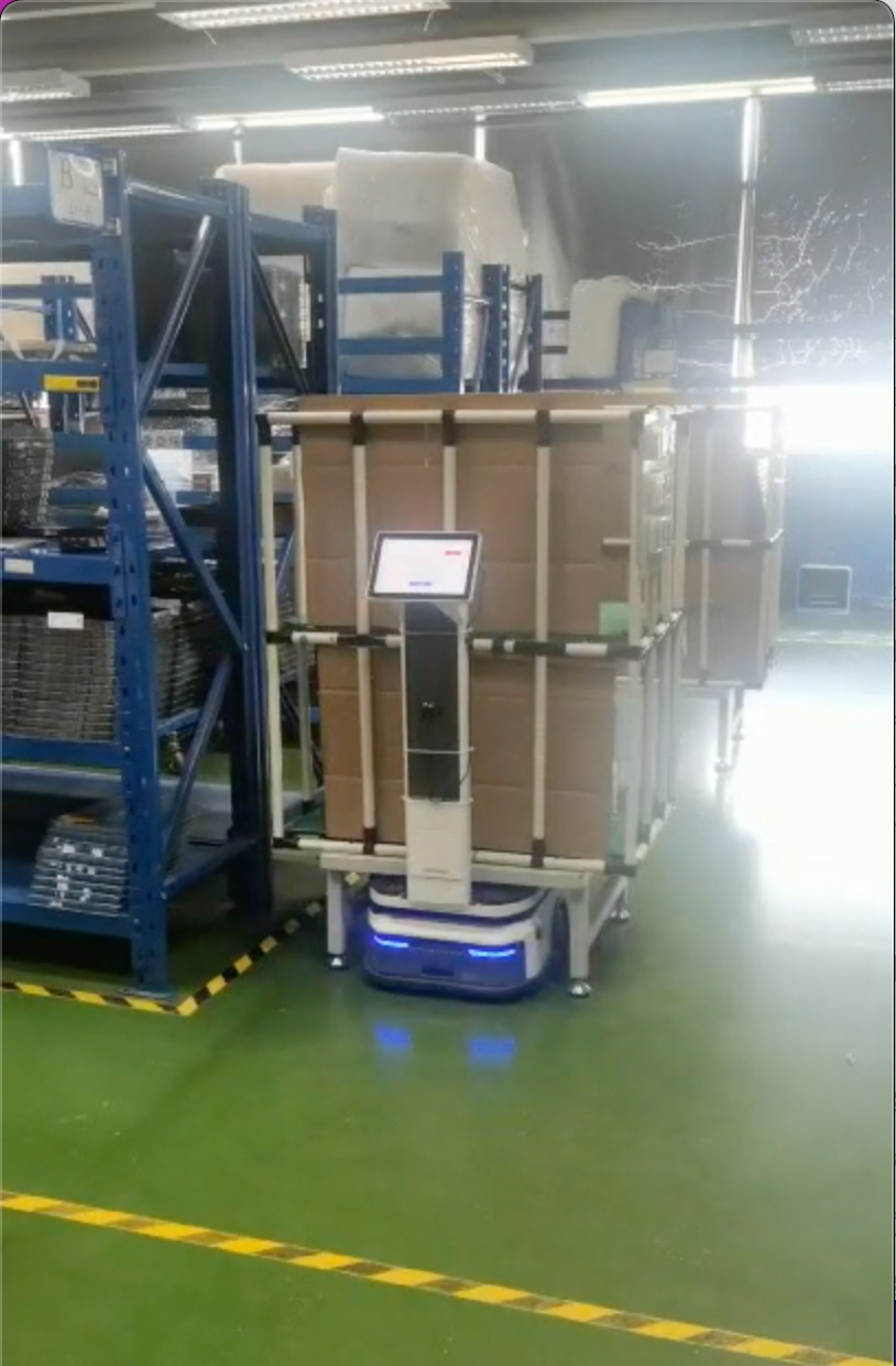 灵活适配:支持标准货架、料箱、托盘等多种载具,顶升负载300KG与底盘负载能力一致,单次任务可完成多批次物料转运,适用于汽车零部件、电子组装等高频搬运场景。