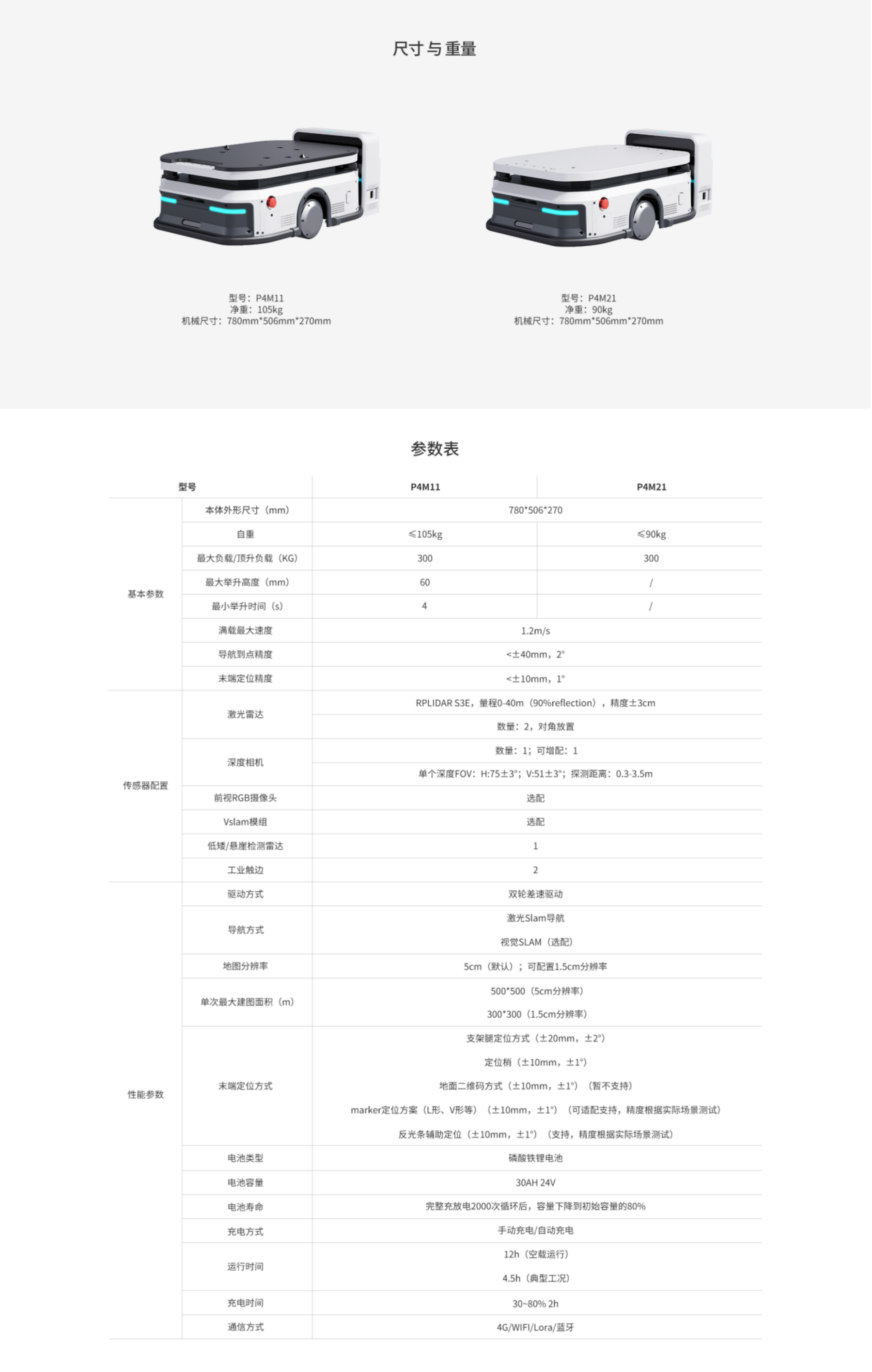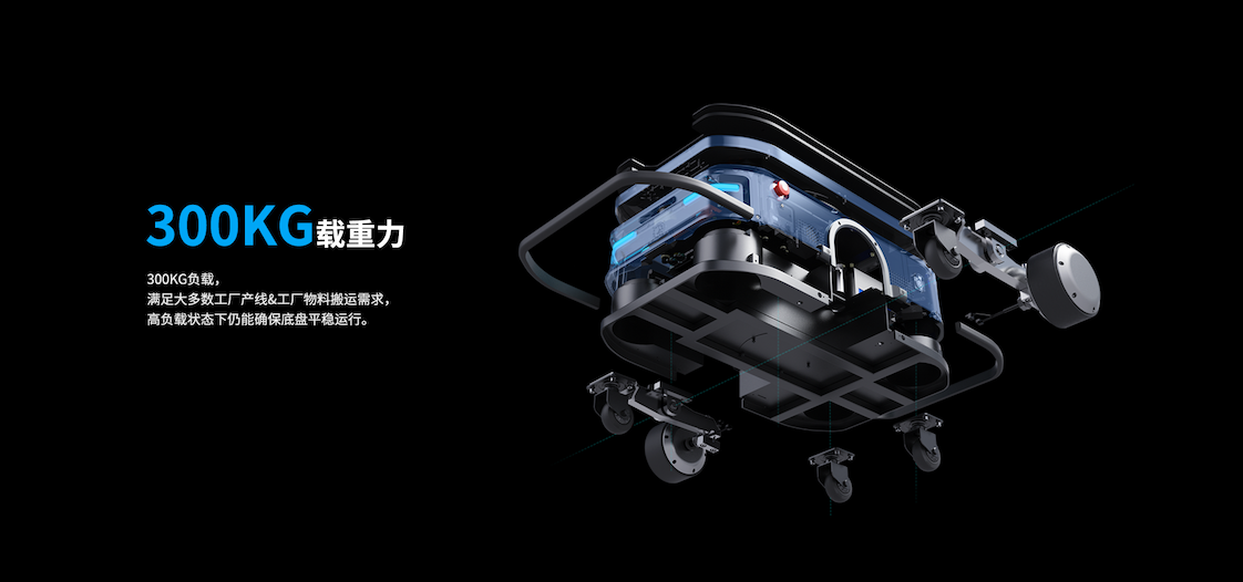 300KG超强负载:满足产线物料、重型设备搬运需求,满载状态下仍保持1.2m/s稳定运行,轻松应对高强度作业。