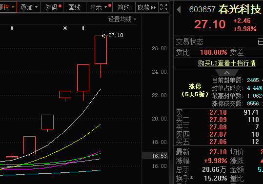 5月12日,春光科技(603657.SH)再度涨停,走出5连板。