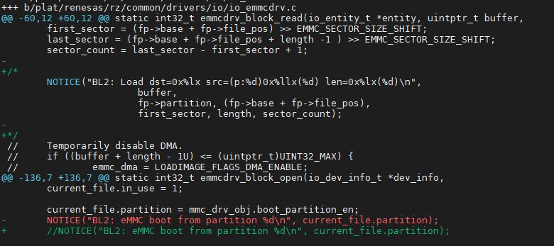 例如(grep -rn “BL2:”)搜索到关键的文件(以下图示只是其中的一个地方),然后屏蔽即可。