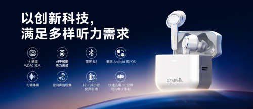 依托AI智能降噪、环境自适应、居家APP验配等核心技术,Cearvol致力于让每一位用户“听得好、听得懂”,实现专业、精准、便捷的听力干预。