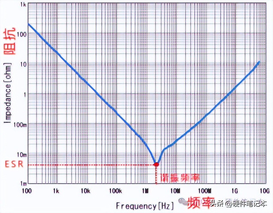 实际电容的复阻抗:Z=ESR+1/jωC+jωL