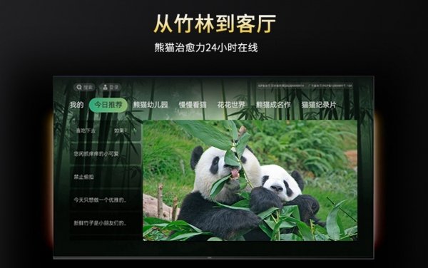 长虹电视携手未来电视共同打造了TV端唯一熊猫内容频道,为熊猫粉打造专属的沉浸式视听盛宴,开启家庭娱乐场景的新纪元。《慢慢看猫》节目中,4K超清镜头记录着熊猫幼崽学习爬树的167次失败尝试,长虹AI TV288Hz高刷屏幕让绒毛抖落的每一粒雪晶都清晰可见。这种「慢直播」的魅力在于,它用憨态可掬的生命力对抗短视频时代的速食焦虑——当年轻人被算法追着跑时,熊猫频道却允许他们停下来,看一片竹叶缓缓飘落七分钟。