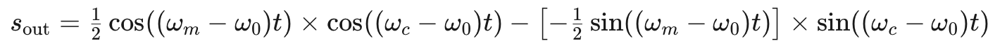 公式1经过下变频后,消息信号的中心频率变为直流(f=0)。得到的信号随后通过低通滤波器,其截止频率为: