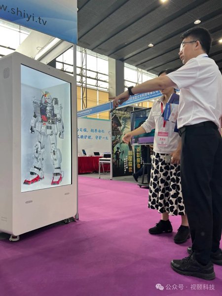 视颐以条形大屏、AI全屏、全息透明柜体等硬件载体,突破传统显示边界。在图书馆场景中,AI画屏通过高色域显示技术与数字人结合,可实时呈现古籍数字化复原成果;在企业展厅,桌面屏与全息透明柜体联动,支持产品3D拆解演示与虚拟试用。