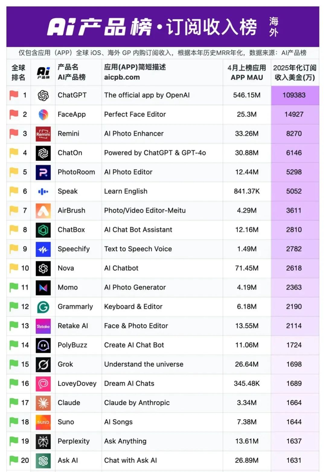 在a16z移动端AI应用Top100中,LoveyDovey凭年化订阅收入1689万美元的成绩,挺入创收效率Top3。