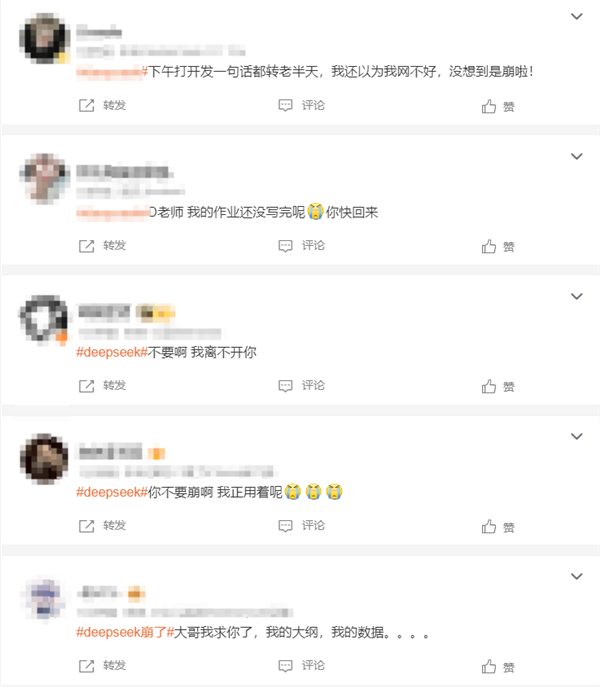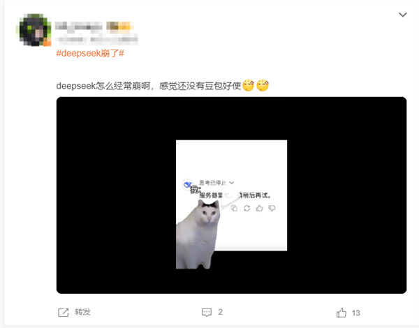 有不少网友发文表示,自己的历史记录消失不见了,暂时还没有恢复;此外,还有网友称“DeepSeek总是崩溃,感觉还没有豆包好用。”
