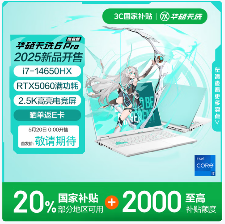目前天选6 Pro的i7-14650HX + RTX5060配置版本已经上架,5月20日0点开售,想要入手的用户不要错过。