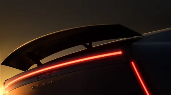 车尾配有电动升降尾翼,同时尾灯组样式和前灯相呼应,同样使用了贯穿灯带的设计,尾门上还印有小鹏的英文字母。