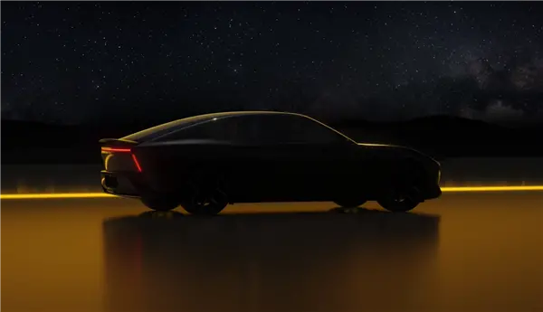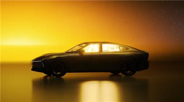 整体而言,新车采用GT轿跑的风格,拥有非常大的溜背和长长的车头,很有古典美,同时有大量采用硬朗的线条营造赛博未来感。