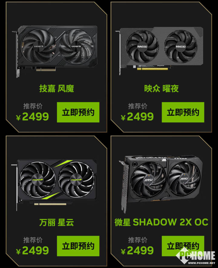 多个品牌定价2499元的RTX 5060显卡已经上架开启预约。