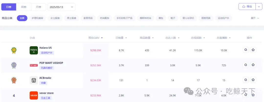 数据来源:similarweb根据EchoTik数据显示,Halara US 5月13日登上商品分类日榜第一名,预估GMV为29.809万美元,势态良好。