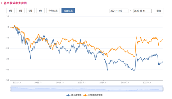 截至5月13日数据,景顺长城景气进取A成立以来净值下跌33.84%,跑输业绩比较基准超过20个百分点。