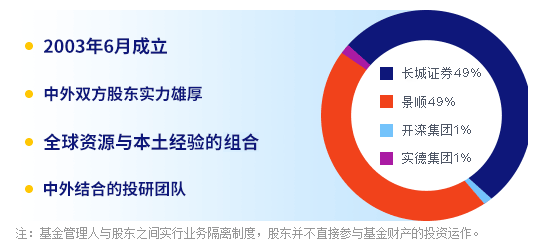 公开资料显示,景顺长城基金管理有限公司成立于2003年6月12日。景顺长城基金由景顺与长城证券联合开滦集团和实德集团共同发起设立,其中景顺和长城证券各持有49%的公司股份。