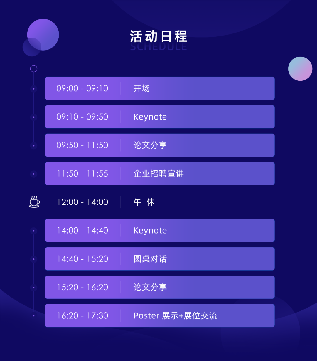 本次论文分享会将设置 Keynote、论文分享、圆桌对话、企业招聘宣讲、论文 Poster 展示、企业展位交流环节,就业内关注的多模态、视频生成等热门主题邀请顶级专家、论文作者与观众做学术交流。
