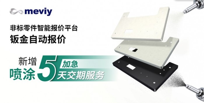 除了大幅缩短报价流程、节省报价时间,meviy非标零件AI智能报价平台还推出了钣金加工加急交期的服务,例如,针对一些无表面处理的标准交期为5天的钣金件,米思米meviy业已给到用户3天、1天加急交期选项;针对钣金件需要做常用色喷涂处理的,可选择5天交期服务。在meviy非标零件AI智能报价平台,上传3D数据,选择表面处理–喷涂–对应的色号,待生成报价后可选择标准交期或5天加急服务。短短几步操作,即可将标准交期9天的零件加工时间压缩到5天,常用色黑、白、灰都适用。解决了喷涂流程冗长、交期不可控的行业痛点。