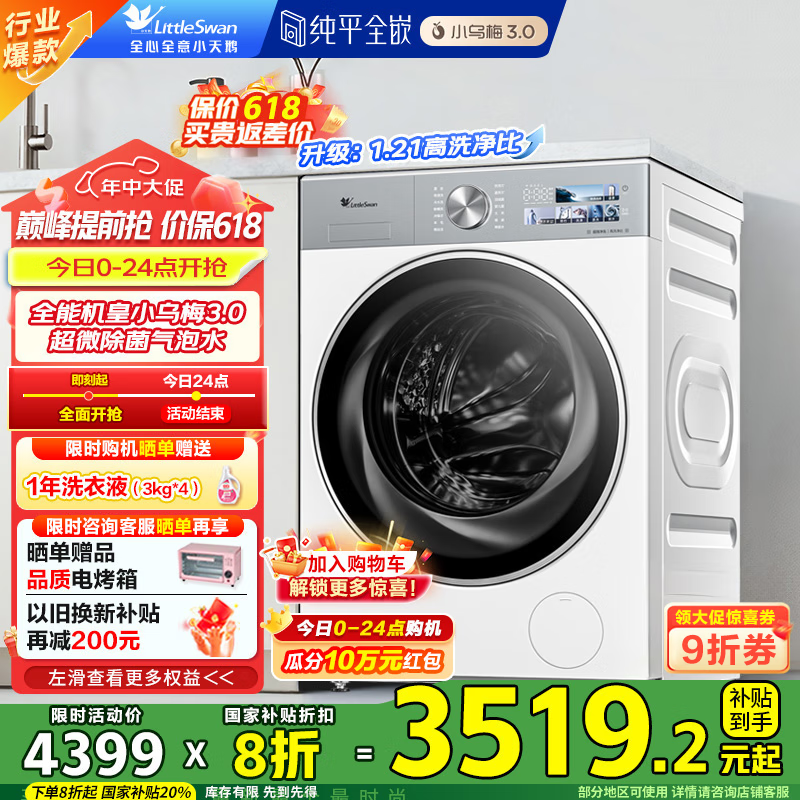 小天鹅10公斤滚筒洗衣机TG10VE40W超值价2413元