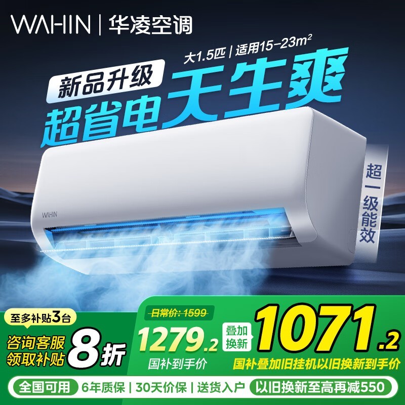 华凌空调1.5匹新一级能效,国补后仅1263元